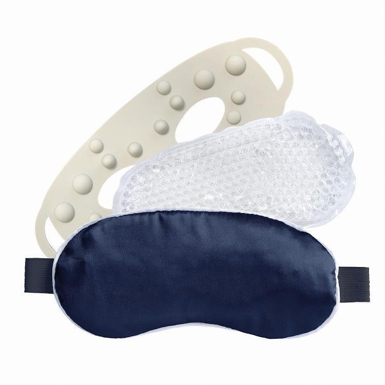 温冷どちらでも使えるジェルビーズと目周りを程よく刺激する突起付きパーツがセットに。