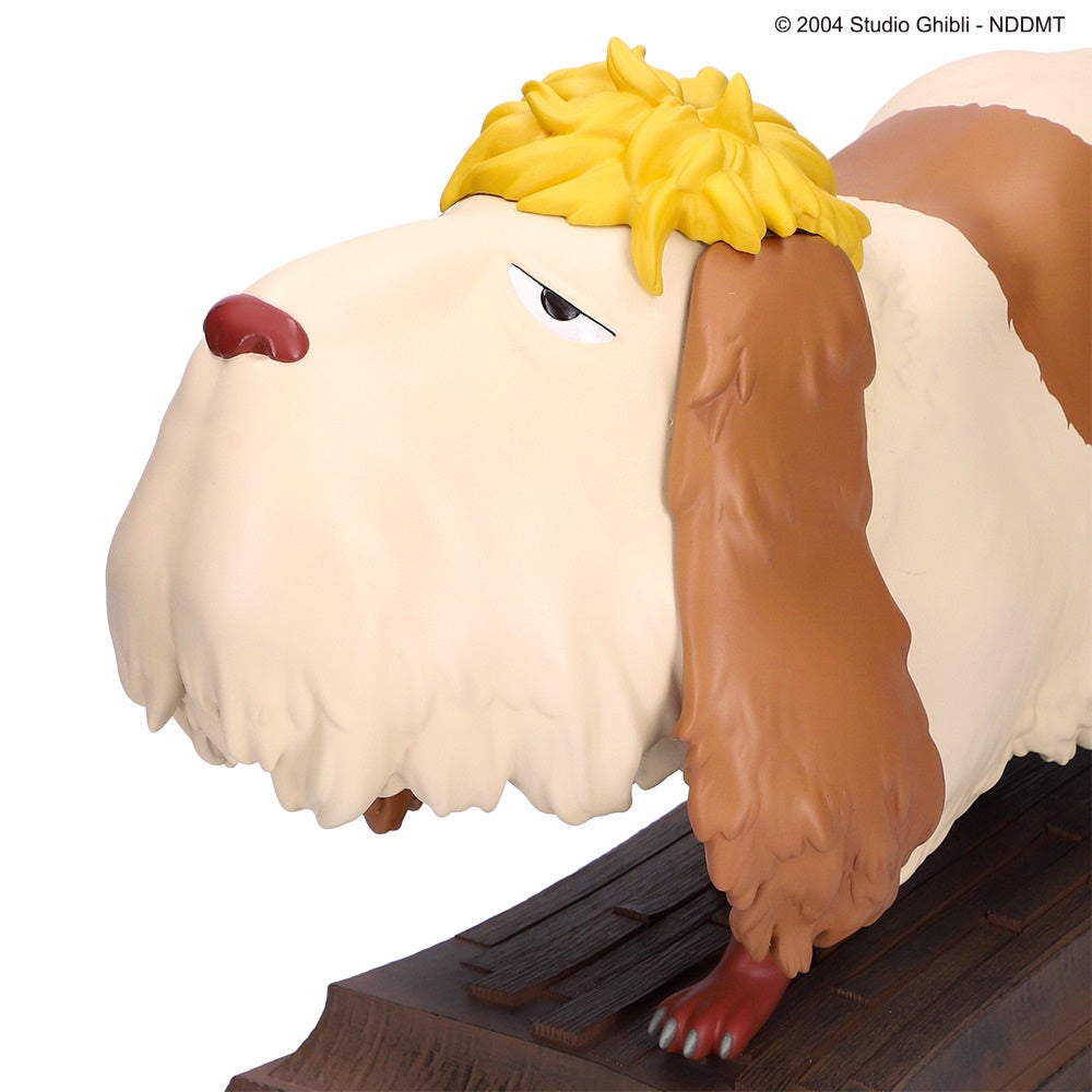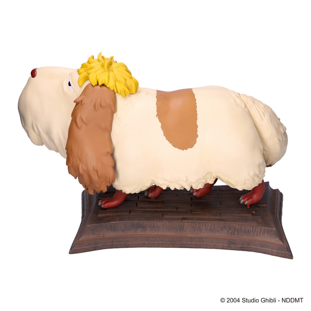 「み~つけた!シリーズ」は、実際にキャラクターがその場にいるかのような丁寧な造形とその大きさが特長のインテリアアイテムです。存在感たっぷりのインテリアとして人気のシリーズに、「ハウルの動く城」より「ヒン!」という、くしゃみのような鳴き方が印象的な老犬、ヒンが登場いたします。サイズ感や毛並みの造形にもこだわり、いまにもそっと歩き出しそうなヒンを表現しました。足元に飾れば、ヒンがソフィーやサリマン先生の足元にいる映画のシーンのよう。