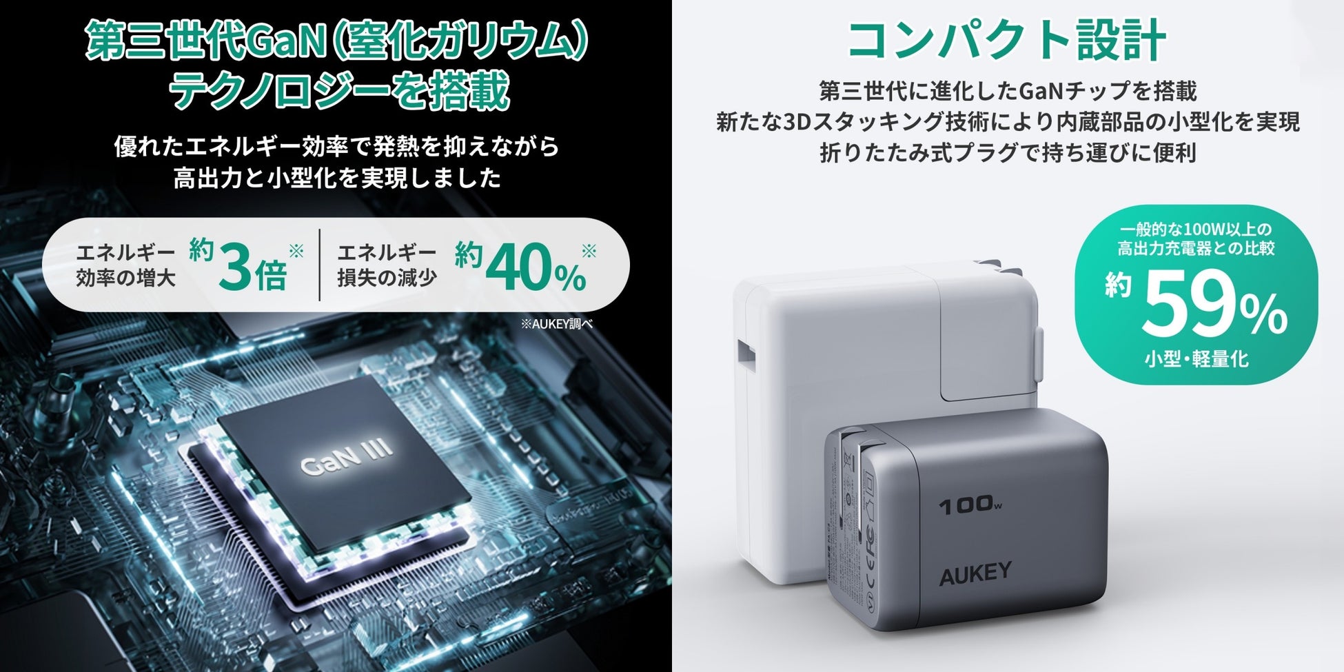 充電関連商品のグローバルトップブランドAukey Technology Co., Ltd.(以下「AUKEY」)は、2024年11月22日 (金)より、急速充電規格PD3.0をサポートし、単独で使用した場合は最大100Wの高出力に対応したUSB-Cポートを備えた、折りたたみ式急速充電器「Comet Mix 3 100W」 を国内の大手家電量販店および主要ECサイトを通じて販売いたします。