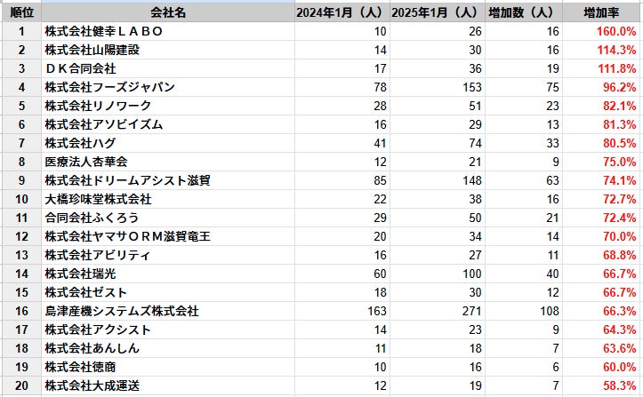 2025年版・滋賀県の従業員数増加率ランキングTOP20を発表!/SalesNow DBレポート
