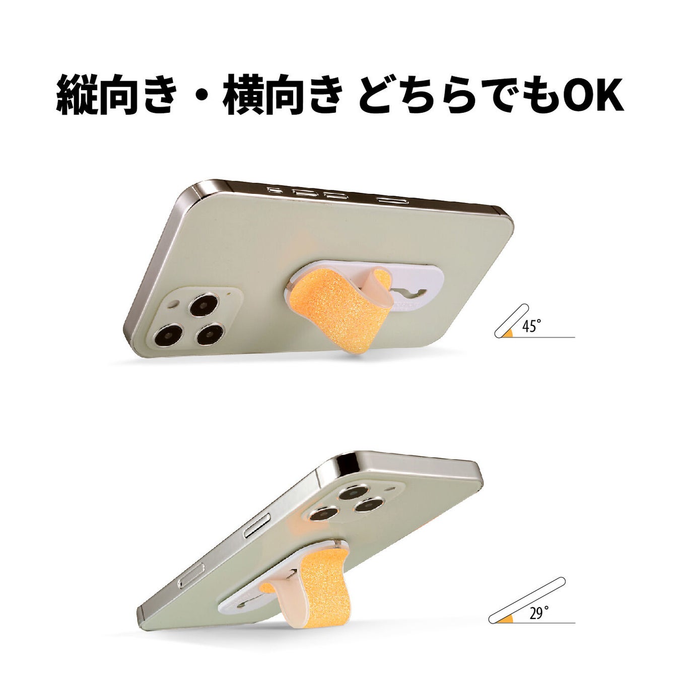 スマホ操作時のバンドとしてだけでなく、スマホスタンドとしても利用できる、とても便利なアクセサリーです。