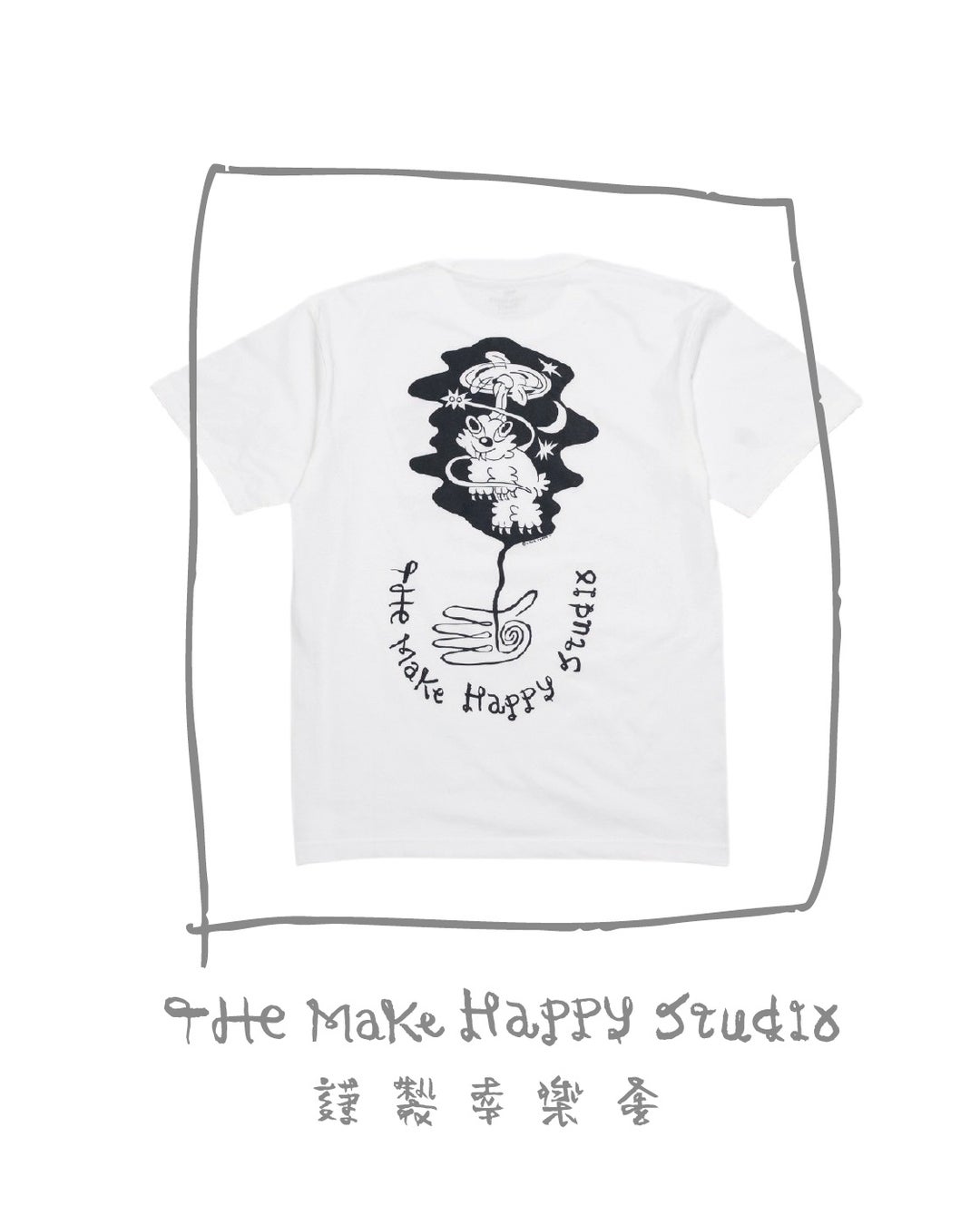 2025 年9月中旬の本格ローンチに先駆け、“The Make Happy Studio”のシンボル「創造する手」をテーマに、3 人の気鋭クリエイターがアートワークを制作。それぞれの感性が光る、限定コラボTシャツが誕生しました。