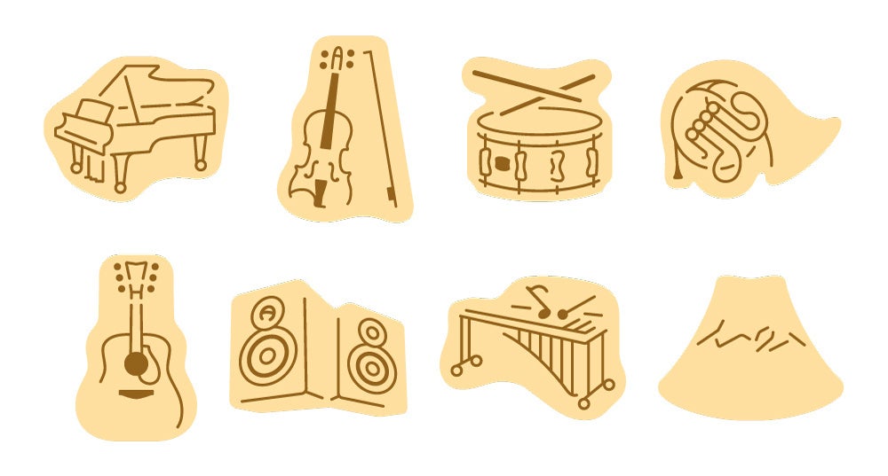 さらに当社は、同じ浜松市に本社を構える春華堂と“演奏できるお菓子”「オカリナモナカ(※1)」を共同開発するなど、音・音楽の楽しみ方の新たな価値探索にも取り組んでいます。本商品には、“音・楽器をより身近に感じて欲しい”という想いを込め、ピアノ、バイオリン、ドラム、ホルン、ギター、マリンバ、スピーカーに加え、当社創業者 山葉寅楠の「山葉」にちなんだ山柄の計8種を採用しています。厳選された素材に、うなぎパイにも使用されている「うなぎ粉」と国産バタ―を合わせ、さっくり軽やかな食感とまろやかでどこか懐かしい味わいをお楽しみいただけます。