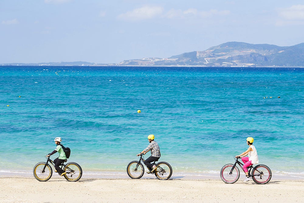 ホテルから車で約5分、沖縄の原風景が残る喜瀬区の集落と近隣に広がるビーチまで自転車で散歩。使用する自転車はファットバイクを使用し、極太タイヤでビーチも簡単にサイクリングを楽しむことが可能です。本プランは組数限定となり専任ガイドが同行いたします。