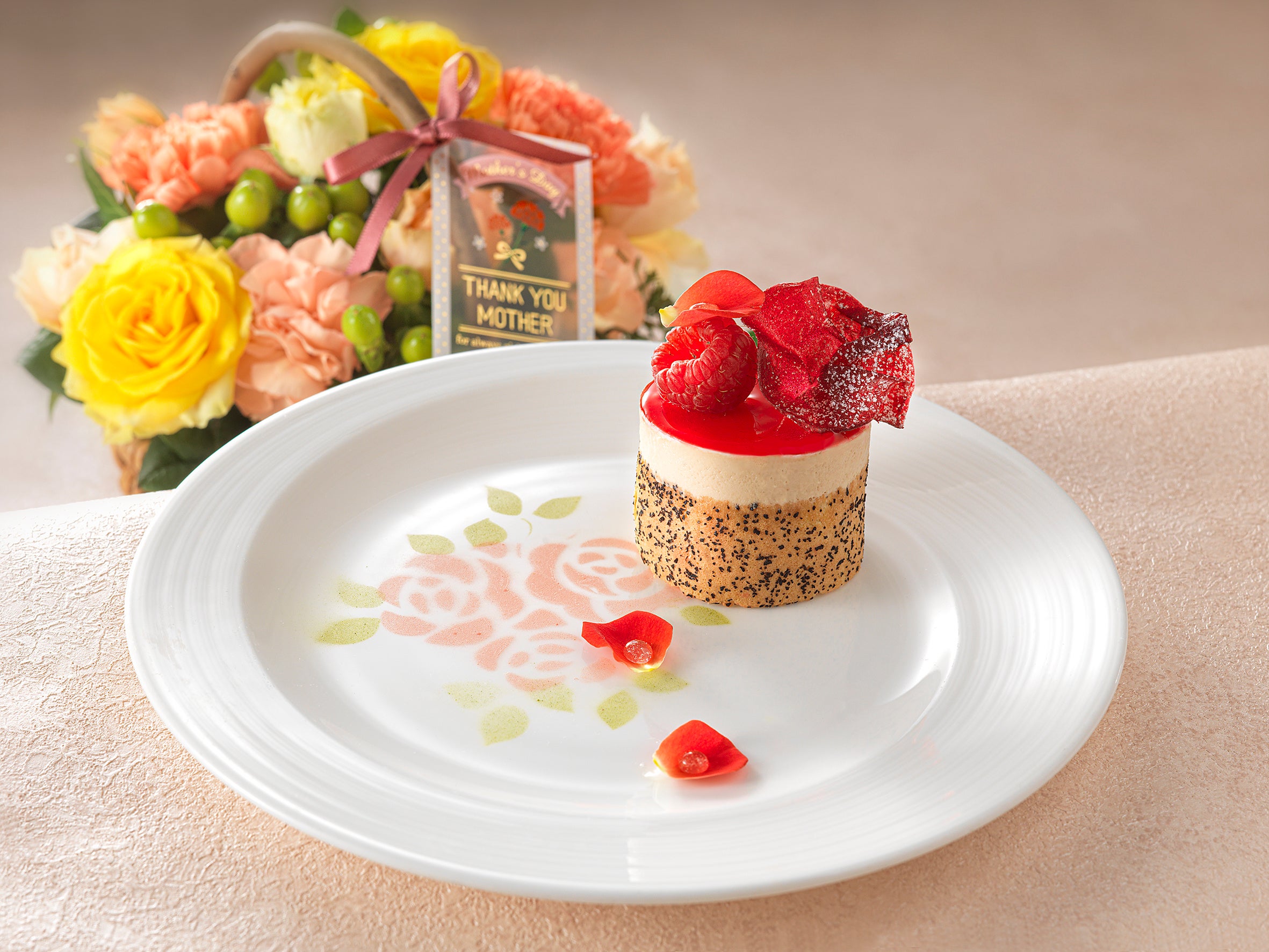 心が華やぐようなスペシャルデザートとフラワーアレンジメントは、素敵なお母様へ日頃の感謝を込めたサプライズプレゼントにぴったりです。