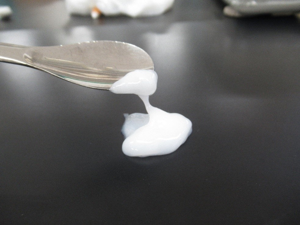 図2 グリセリンゲルの様子:グリセリンゲルは全体が均一で白色ゲルが形成されており、安定性も高いことが確認されています。