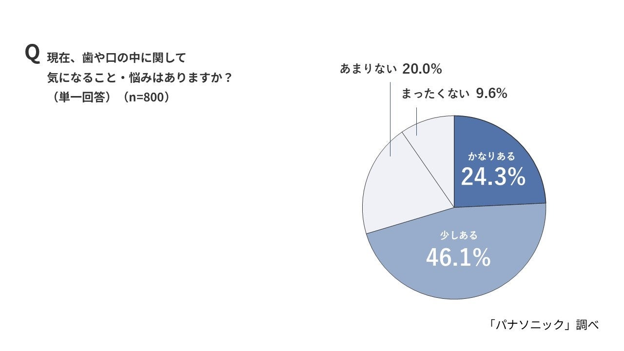 2025年10月から75歳以上の医療費窓口負担の上限が引き上げられるなど、医療費の高騰が続く中、日常的な予防を目的とするケアの重要性が一層高まっています。11月8日の「いい歯の日」を前に、パナソニック株式会社は、全国の15歳~69歳の男女800名を対象に「オーラルケアに関する意識調査」を実施しました。