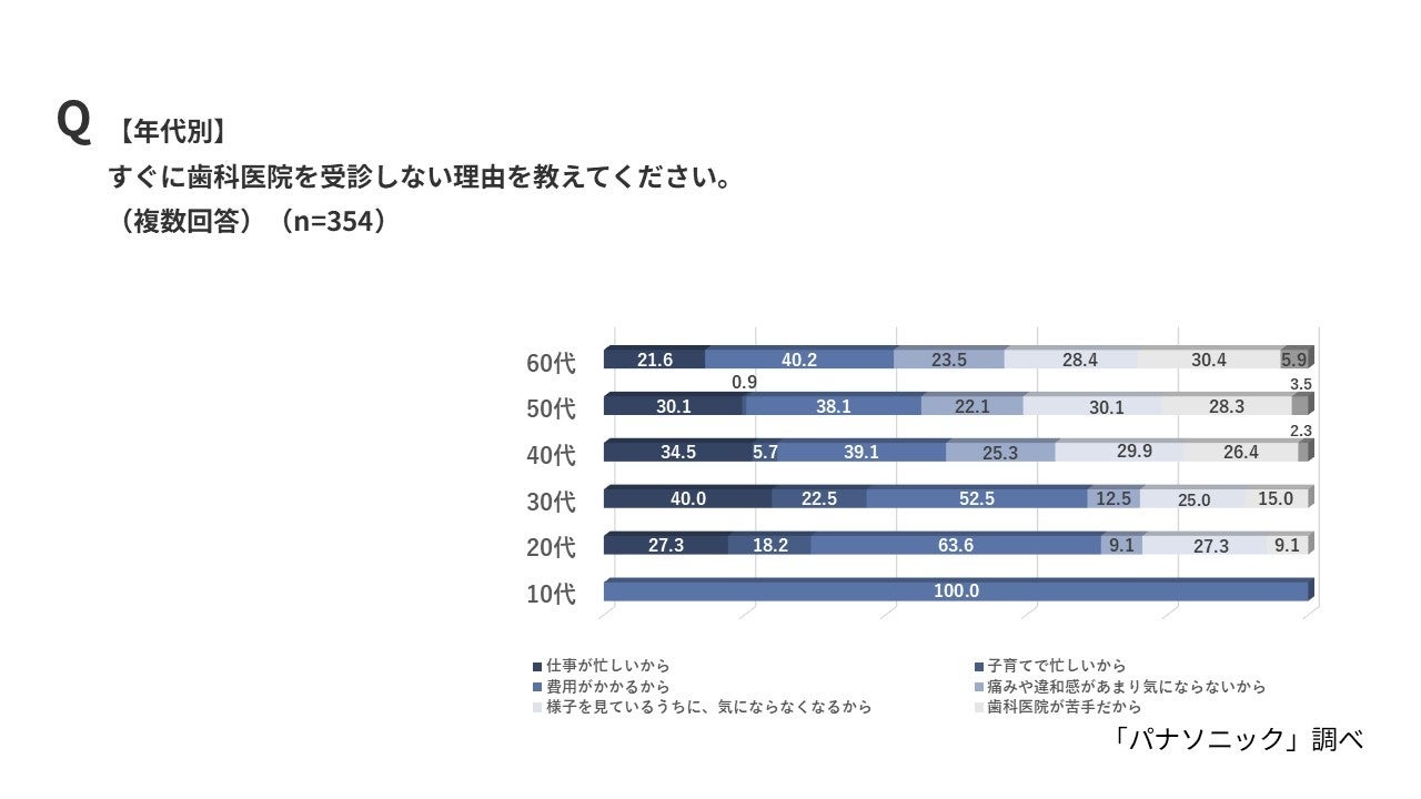 子育て世代は、仕事や育児の忙しさが背景にあり、歯科受診が難しい実情がうかがえます。