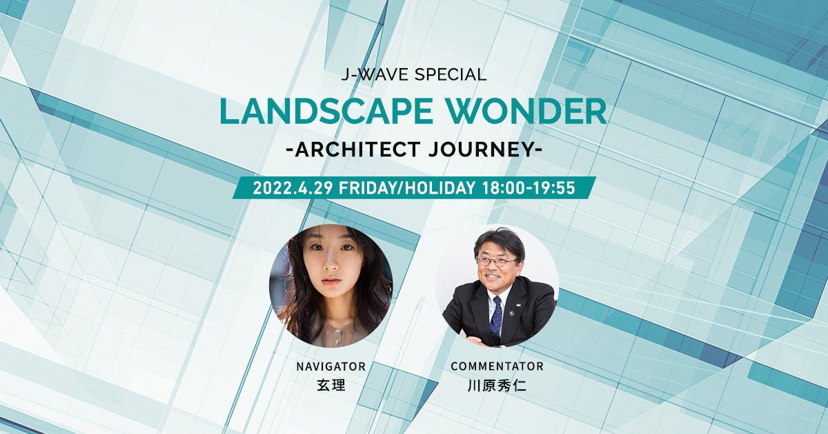 FMラジオ局J-WAVE(81.3FM)では、4月29日(金・祝)18:00~19:55に特別番組『J-WAVE SPECIAL LANDSCAPE WONDER ~ARCHITECT JOURNEY~』(ナビゲーター:玄理)をオンエアいたします。