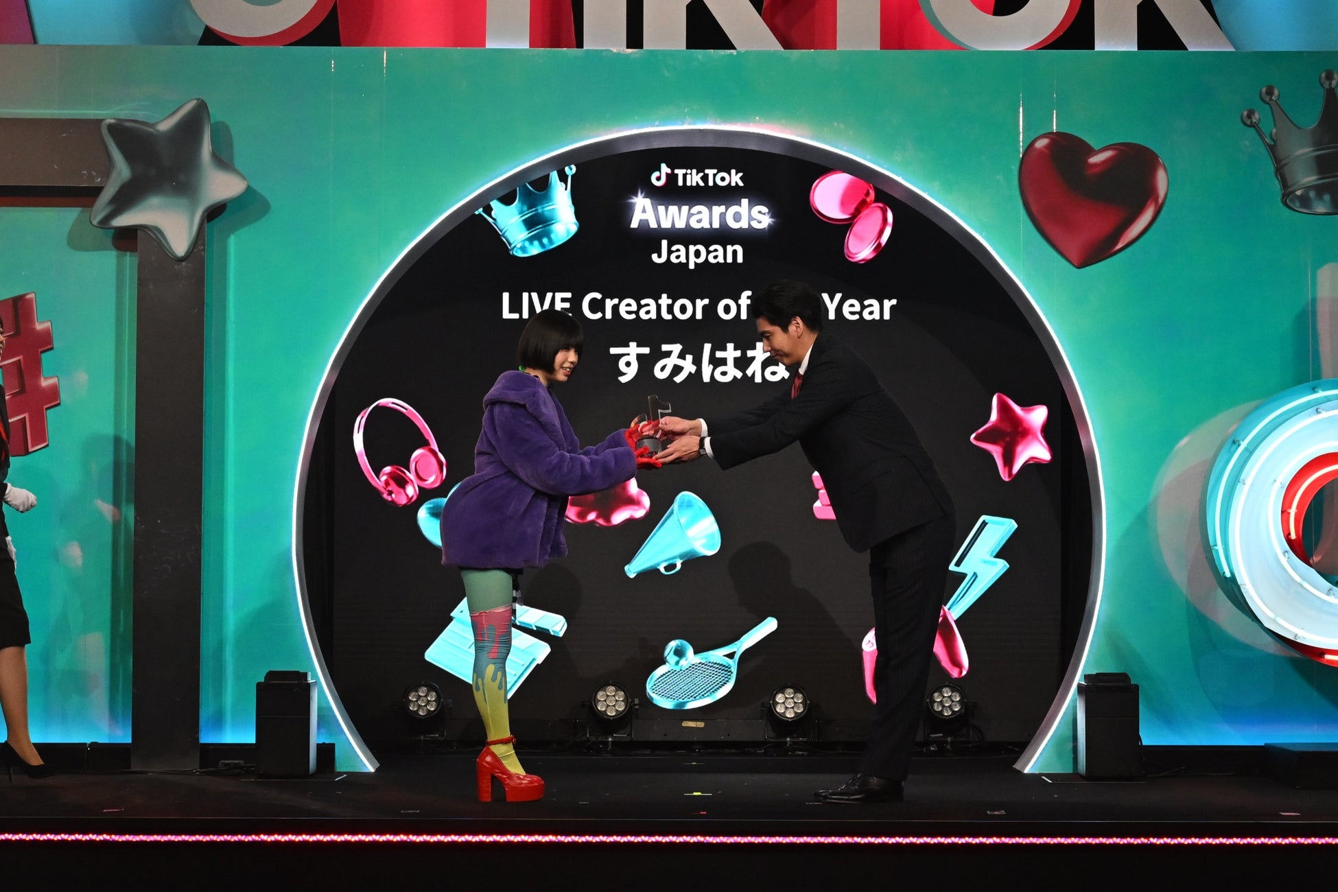 また、TikTok LIVEにおいて最も影響力のあったクリエイターを選出する「LIVE Creator of the Year」は、同世代の流行を取り入れ、ファッションや振付動画、弾き語りやオリジナル楽曲を中心に投稿するクリエイター「すみはね」(@sumihane)が受賞。TikTok LIVEでは、オリジナル楽曲の弾き語りをはじめ、TikTokが選挙の偽・誤情報防止の取り組みとして開催したTikTok LIVE「あなたの一票を守る!選挙の偽・誤情報に惑わされないためにできること」にも参加。選挙の偽・誤情報の見極め方と対策を語り同世代の若者へメッセージを発信するなど、TikTok LIVEでの幅広い活躍を総合的に判断しての選出となりました。