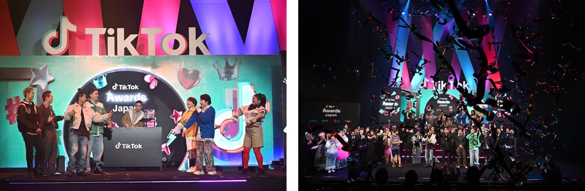「TikTok Awards Japan」2024のグランドフィナーレでは、アーティストのKOMOREBIとMyMがサプライズで登場。11月20日リリースされたKOMOREBI×MyM「DA.YO.NE」を披露。また同日に発表した「TikTokトレンド大賞2024」で大賞を受賞した「Giri Giri」をKOMOREBI、MyM、受賞クリエイター全員でパフォーマンス。2024年、TikTokで活躍したクリエイターの功績を称え、祝う授賞式に相応しい賑わいで幕を閉じました。2025年もお楽しみに!