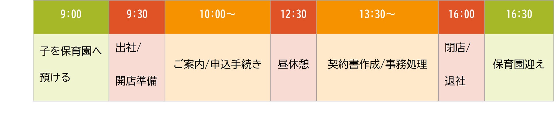 深刻化する不動産業界の人材不足へ対応するためにも、こうした就労継続の不安要素を受け止め、既存の枠にとらわれない時代に即した店舗づくりを行い、従業員の持つ意欲や能力を十分に発揮できる環境を整えていくため、両立支援型店舗の導入を決定しました。