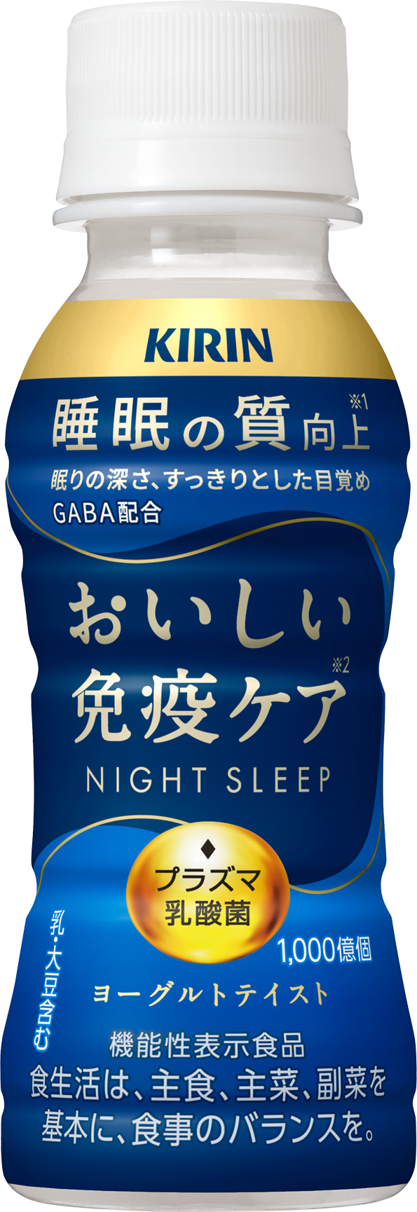 「キリン おいしい免疫ケア」シリーズは、キリンの独自素材「プラズマ乳酸菌」を配合した機能性表示食品です。2023年3月に「キリン おいしい免疫ケア」を発売し、同年6月にはカロリーを本体比50%オフにした「キリン おいしい免疫ケア カロリーオフ」を発売しました。さらに同年10月には「プラズマ乳酸菌」に加え「GABA」を配合し、“免疫ケア”と“睡眠の質(眠りの深さ、すっきりとした目覚め)向上”をサポートするダブルヘルスクレーム商品の「キリン おいしい免疫ケア 睡眠」を発売するなど、お客様の様々なニーズに応える商品のラインアップを拡大してきました。
