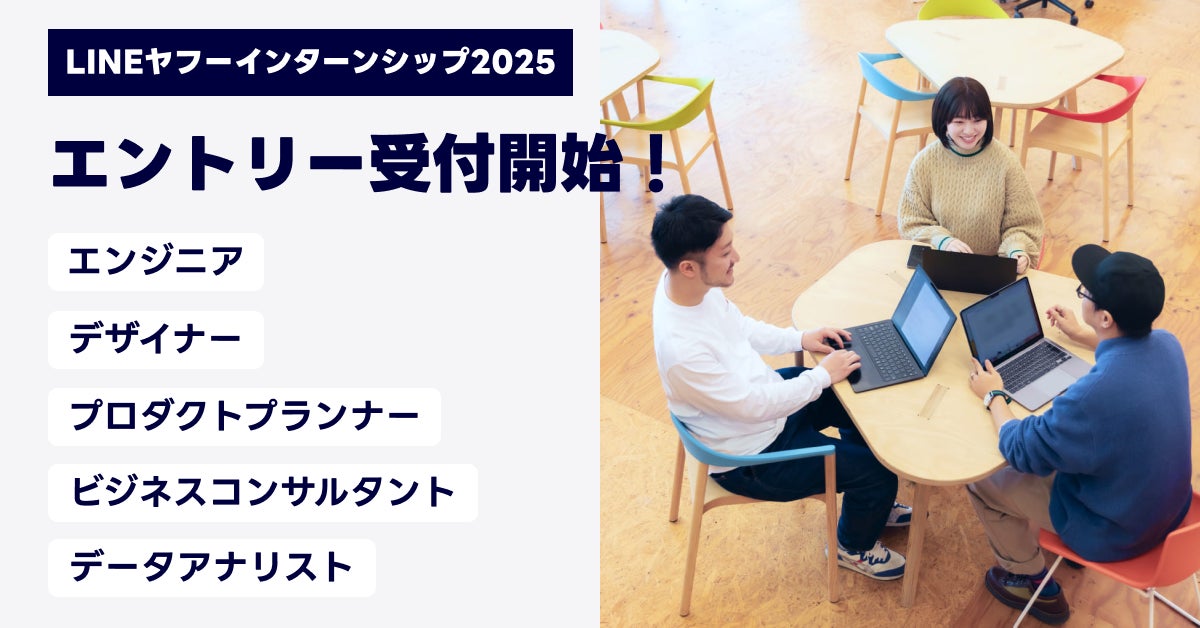 LINEヤフー株式会社(以下、LINEヤフー)は、本日より2025年夏季インターンプログラム「LINEヤフーインターンシップ2025」のエントリー受付を開始しました。募集職種は、エンジニア、プロダクトプランナー、ビジネスコンサルタント、デザイナー、データアナリストの5職種で、100以上のポジションから約230名を募集し、実務経験を積みながら、当社で働くイメージ形成や自身のキャリアを探求する機会を提供します。
