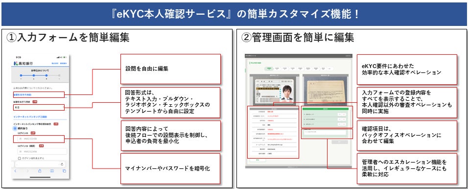 『eKYC本人確認サービス』は、生体認証技術を活用し、口座開設・各種変更手続き・継続的顧客管理などを可能にするサービスです。今回、新たに「簡単カスタマイズ機能」を追加し、提供を開始します。