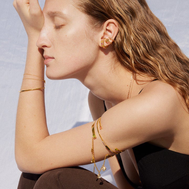 4月4日(木)より、感謝の気持ちを込め、艶やかで色彩豊かなカラーストーンの限定ジュエリーを発売いたします。色とりどりの光を放つ、マルチサファイアが煌めくリングとイヤーカフ、そしてどこかエキゾチックなムードが漂うアームカフバングルがラインナップ。さらに、人気のカラーストーンとパヴェダイヤモンドが輝くモダンなオープンリングも登場します。