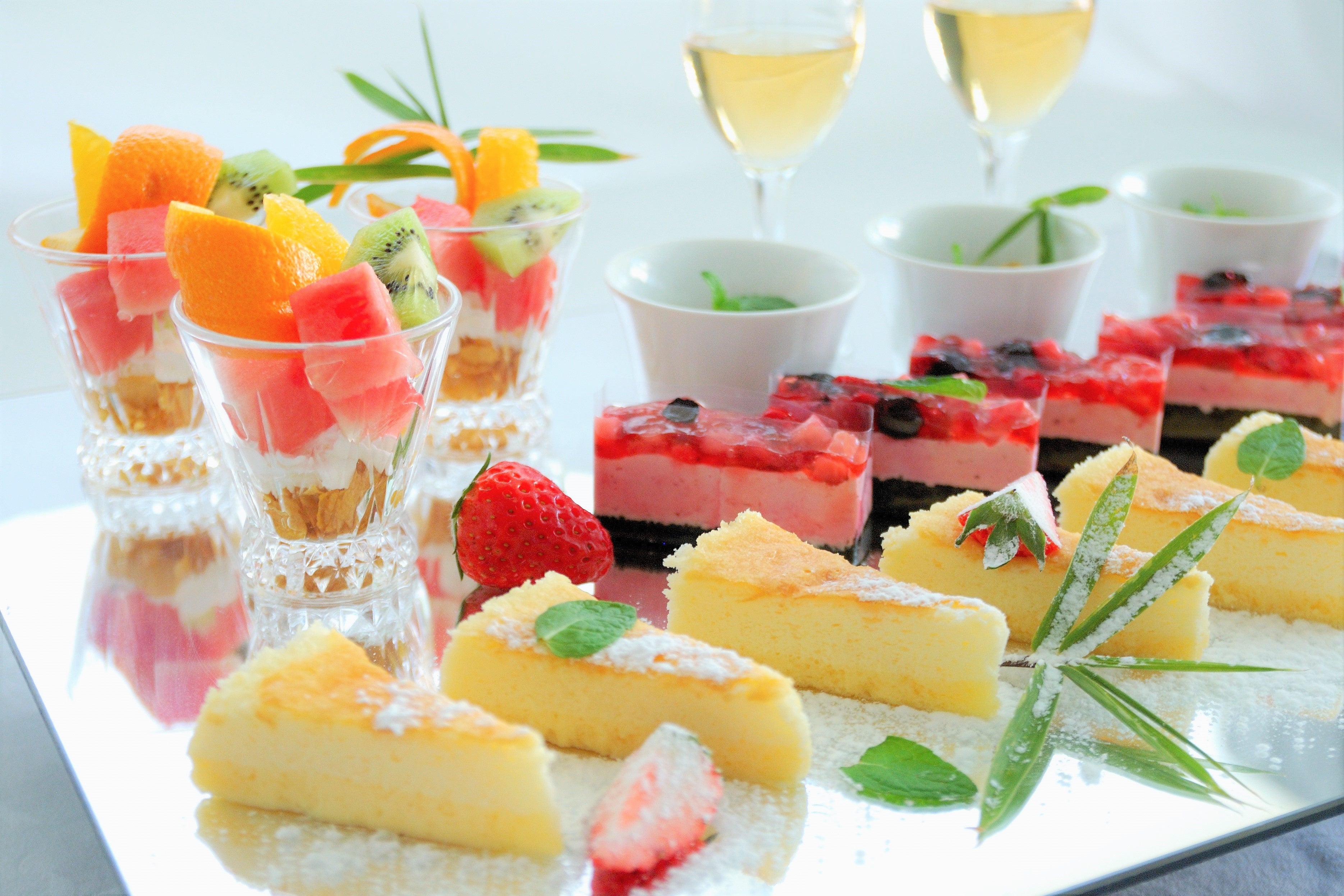 梅ゼリー、黒糖わらび餅、フルーツ 等。)