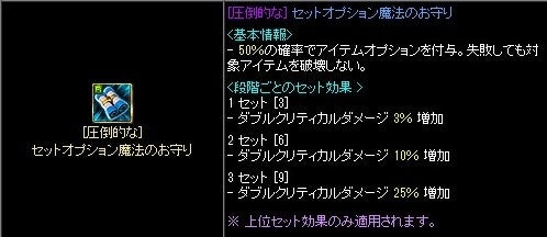 新規セットオプションの効果には「ダブルクリティカルダメージ 25%増加」や「ターゲットの全ての属性抵抗を100%弱化させる」といった、これまでのオプションに無い強力な効果を持つものがあります。