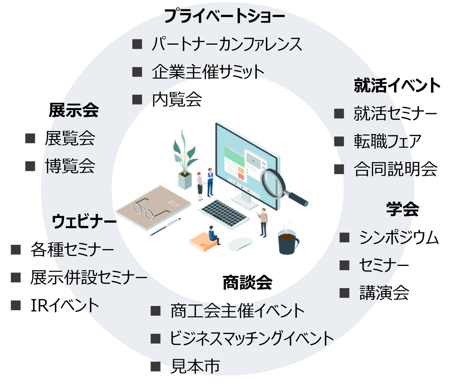 ・リアルイベントとオンラインイベントのハイブリッド開催を支援。