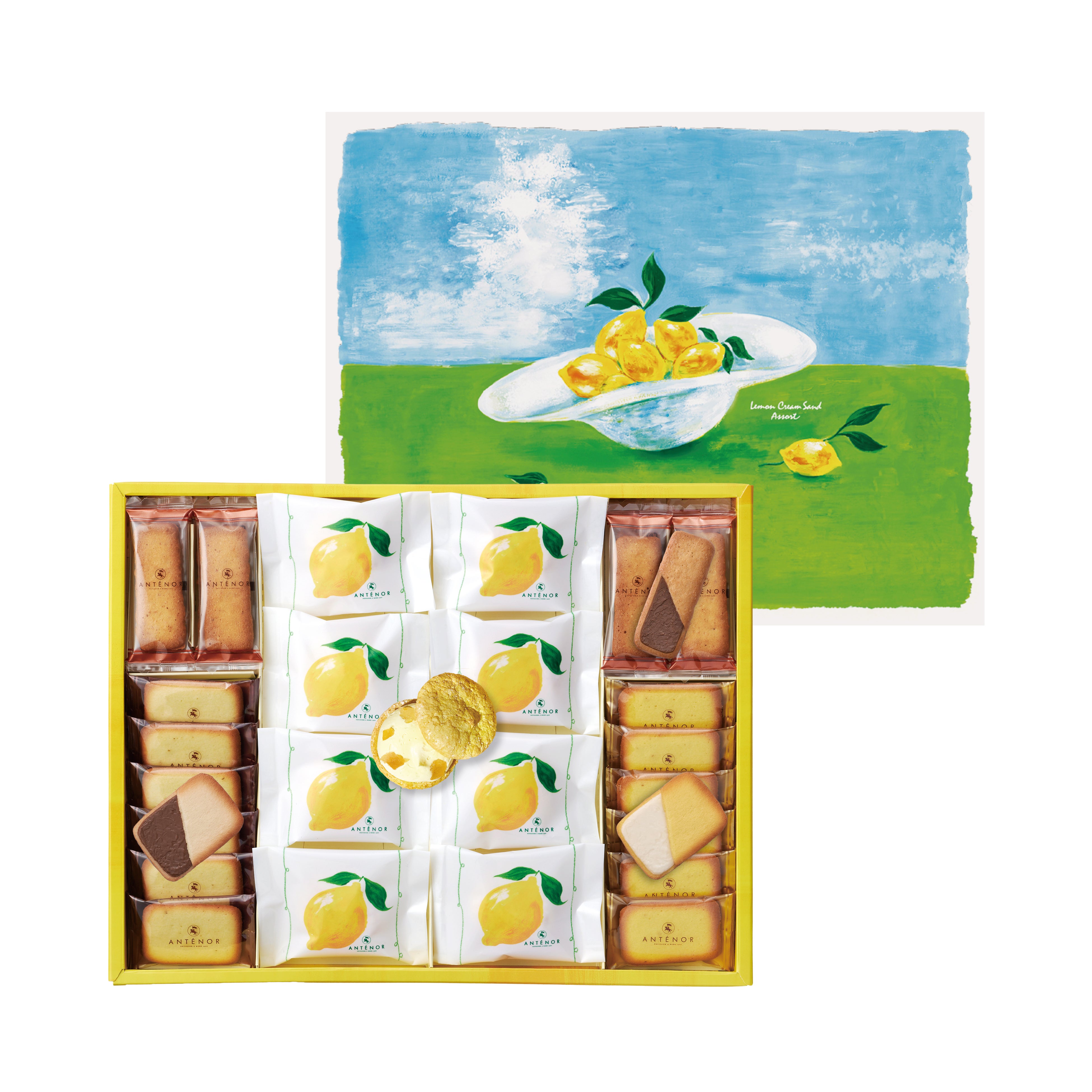 かるい食感の「レモンのクリームサンド」に発酵バターが香ばしい「フィナンシェ」、さわやかなレモン味のホワイトチョコをサンドした「ラングドシャ・シトロン」を詰め合わせて。