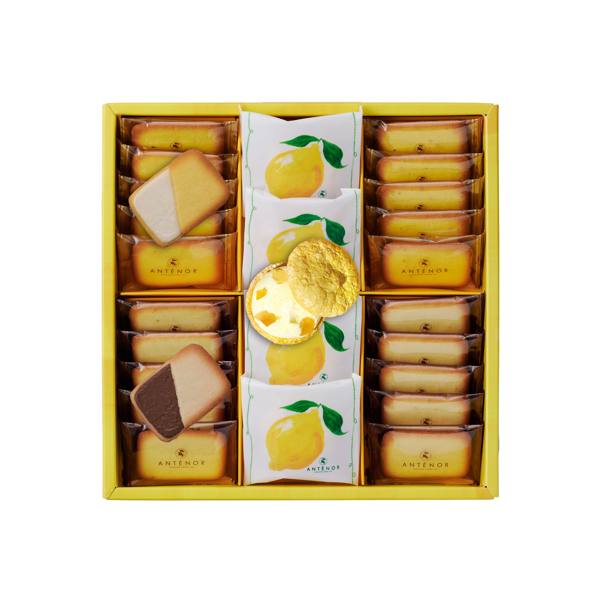 内容:レモンのクリームサンド 8個、ラングドシャ・シトロン 6個、ラングドシャ・ショコラ 6個、ビスキュイ・オ・ショコラ 8個