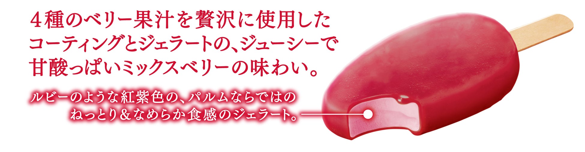 第4弾はルビーのような紅紫色のPARMジェラート夏限定のジューシーな味わいとパルムならではのねっとり&なめらか食感!