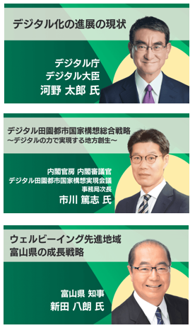 「ウェルビーイング」を中心に据えた富山県の成長戦略とそれに対する取り組みを語る。