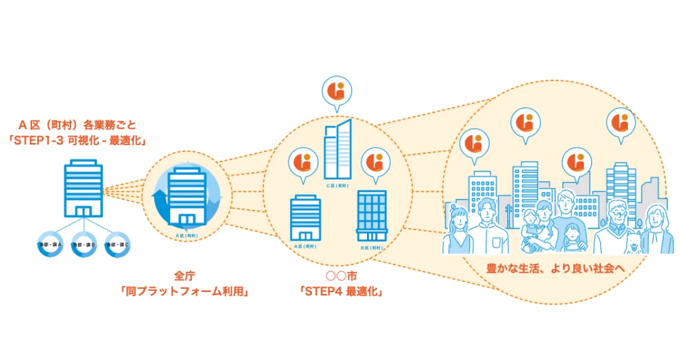 業界唯一と言える200以上の自治体様との連携データを元に、自治体業務を「見える化」し、業務の標準化・職員負担の軽減・市民サービス向上などを支援します。