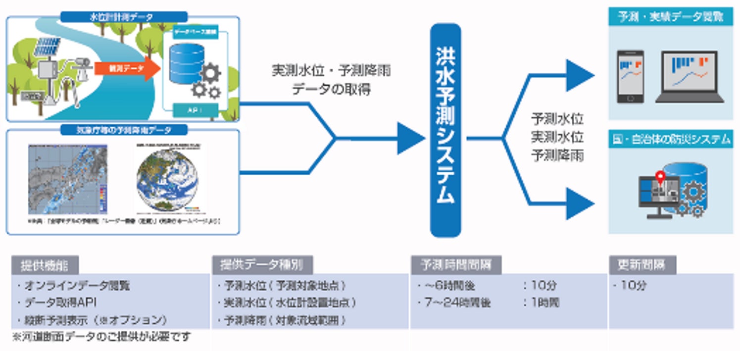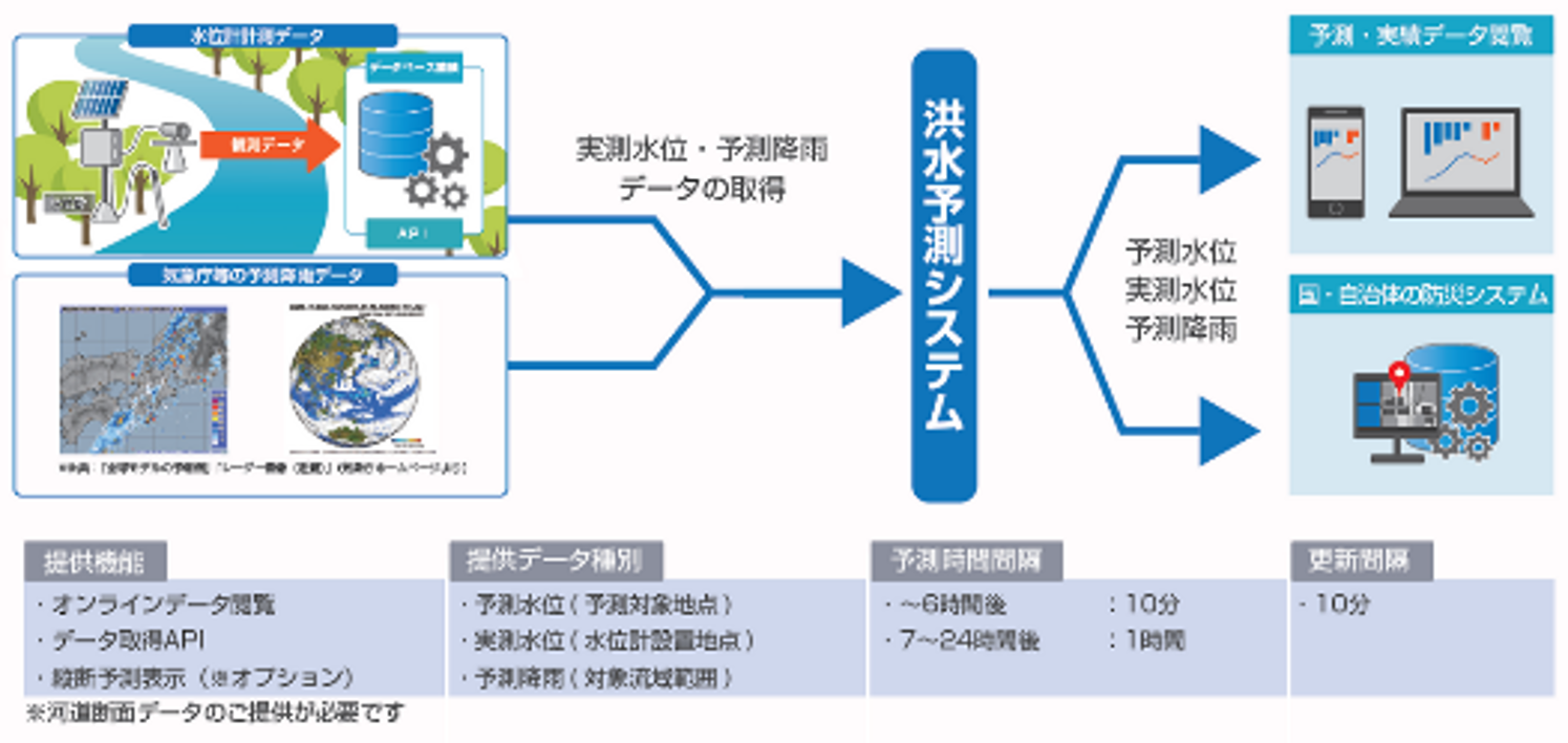 24時間先までの予測水位をリアルタイムに提供します。AIモデルと物理モデルのハイブリッド構成により、未経験規模の洪水にも適切な予測が可能です。