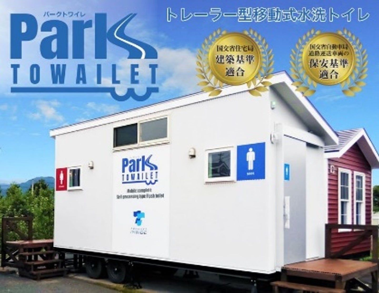 トレーラーハウスに組み込んだ『移動式の水循環水洗トイレ』です。洗浄水を再利用して繰り返し使えるトワイレの浄化処理技術を搭載しているため、運搬後トワイレと同じように利用することができます。