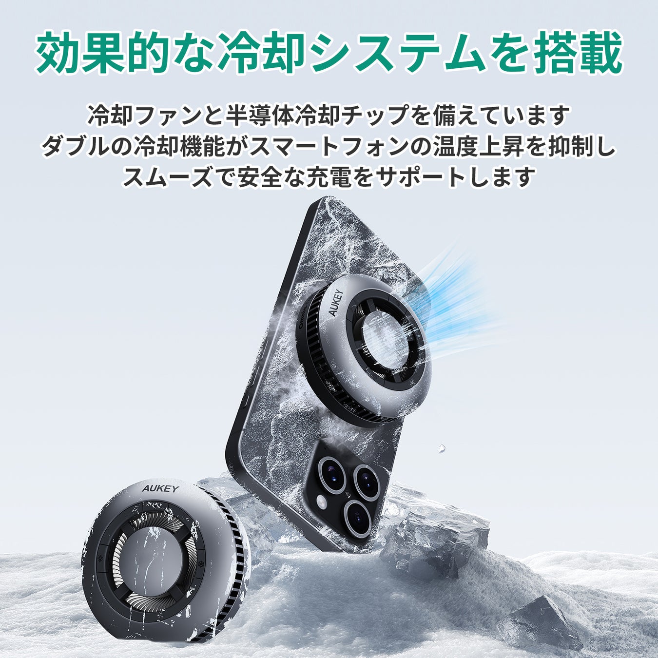 【AUKEY】 Qi2対応 アクティブ冷却機能搭載 マグネット式ワイヤレス充電器「MagFusion GameFrost」 4月11日(金)「Makuake」で日本初公開!