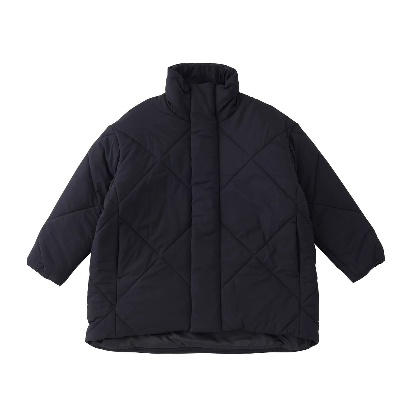 中綿には軽量で保温性の高いプリマロフトを使用し、ドロップショルダーで丸みのあるAラインシルエットがきれいなビッグキルティングジャケット。