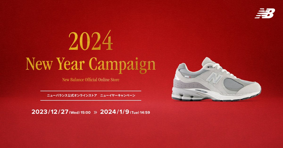 株式会社ニューバランスジャパン(本社所在地:東京都千代田区、代表取締役社長 久保田伸一)は、ニューバランス公式オンラインストアにて、2024年の新たなスタートを祝して、12月27日(水) 15:00 ~ 1月9日(火) 14:59まで「ニューバランス公式オンラインストア ニューイヤーキャンペーン」を実施いたします。今だけの特別なキャンペーンをぜひお楽しみください。