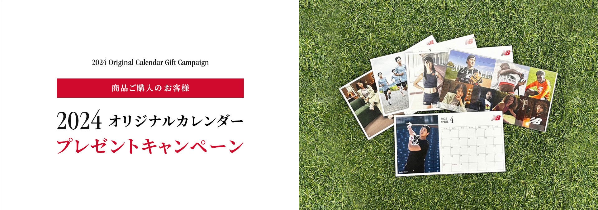 期間中に商品をご購入のお客様に、感謝の気持ちを込めて、大谷翔平選手をはじめとしたニューバランス アスリート/アンバサダーの写真で構成された2024ニューバランス オリジナルカレンダーをプレゼントいたします。