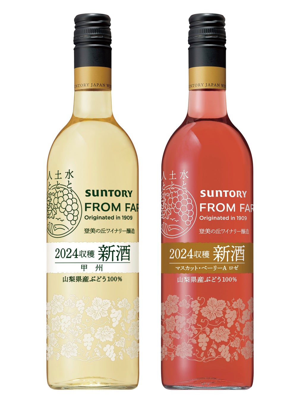 サントリー(株)は、日本ワインブランド「SUNTORY FROM FARM」より、品種シリーズとして「同 新酒 甲州 2024」「同 新酒 マスカット・ベーリーA ロゼ 2024」を11月3日(日・祝)から全国で数量限定新発売します。