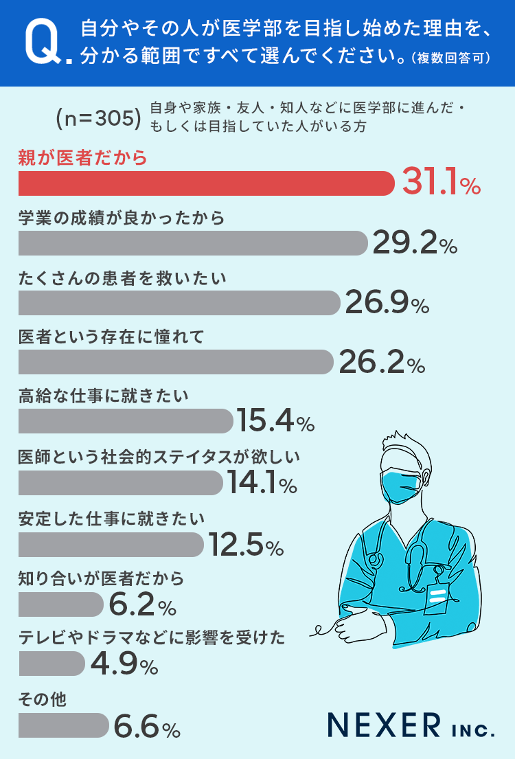 もっとも多かったのは31.1%で「親が医者だから」でした。