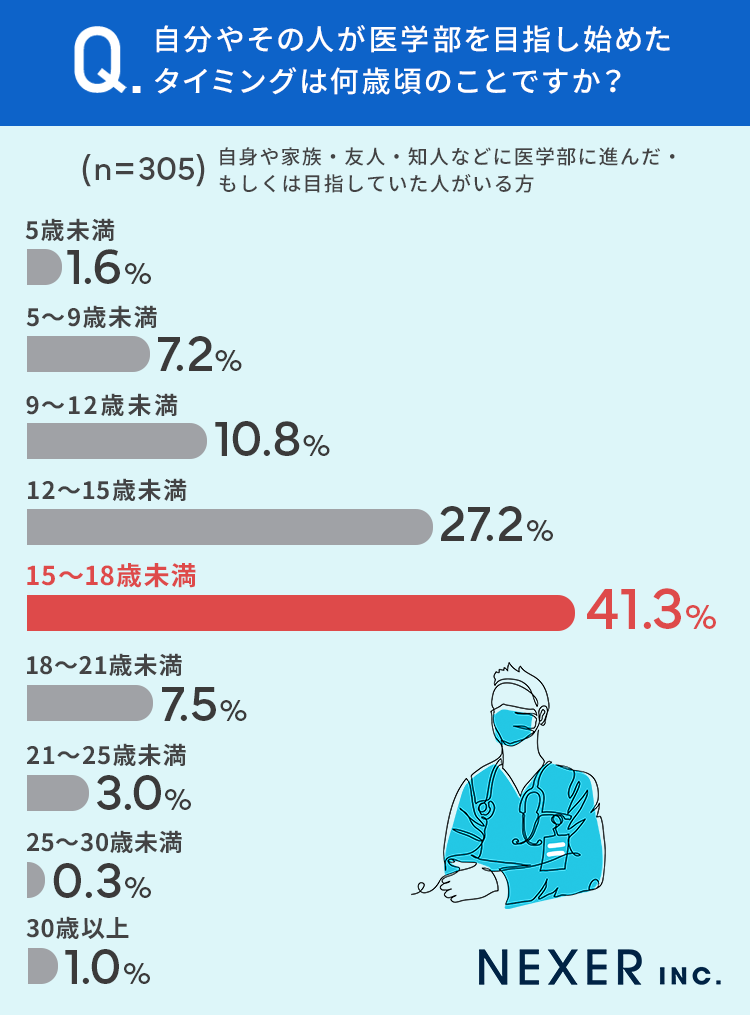 ■41.3%が「15~18歳未満」の頃に医学部を目指し始めた