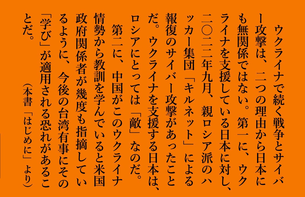 「ウクライナは、8年かけて重要インフラの防御能力を高めました。情報共有をはじめとする官民連携の進め方、国際支援を取り付けるための努力など、日本が学べることも多いです。本書が少しでも皆様の参考になれば幸いです」
