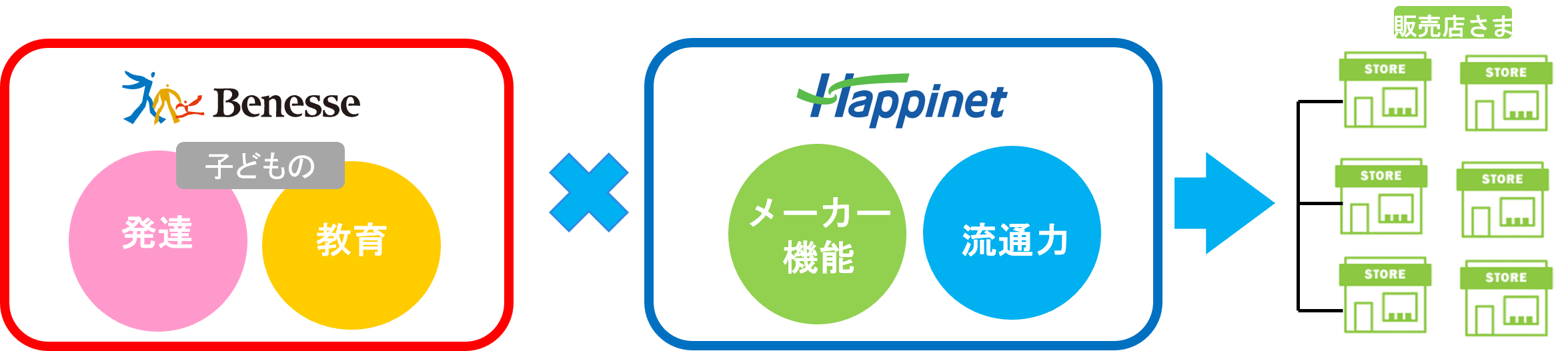 今回、子供の発達と教育に深い知見を持つベネッセと、玩具企画・開発のノウハウと流通力を合わせ持つハピネット両社の強みを活かした「おもちゃ」をもっとたくさんの子どもたちに楽しみながら体験して欲しい、という両社の思いが合致し、「しまじろうの玩具」を発売することになりました。