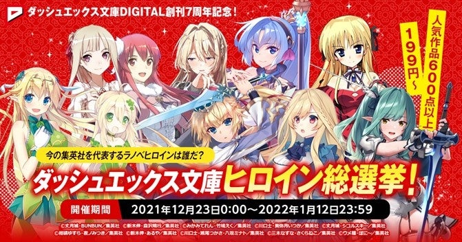 株式会社ブックウォーカー(本社:東京都千代田区 代表取締役社長:橋場一郎)は、総合電子書籍ストアBOOK☆WALKER(以下、BOOK☆WALKER)にて、集英社が発行するライトノベル文庫レーベル「ダッシュエックス文庫DIGITAL」の創刊7周年を記念したヒロイン総選挙を開催中です。