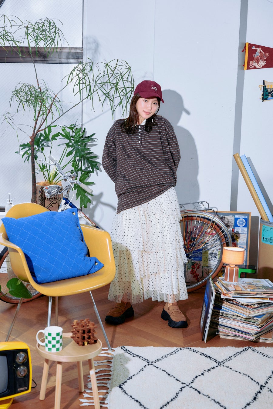 お仕事ではたくさん可愛いお洋服を着る機会があるのですが、普段着になると自分の好きな系統ばっかりになっちゃうことが多いので、いつも着ない服を試しに着てみたりして新しい自分を見つけてみたいなと思います。