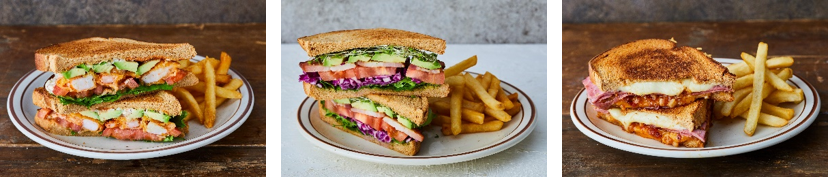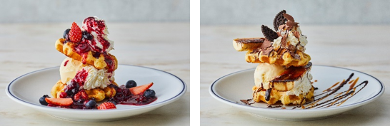 ▲左から、J.S.チキンバーガー、6ベジタブルバーガー、ワッフルイメージ