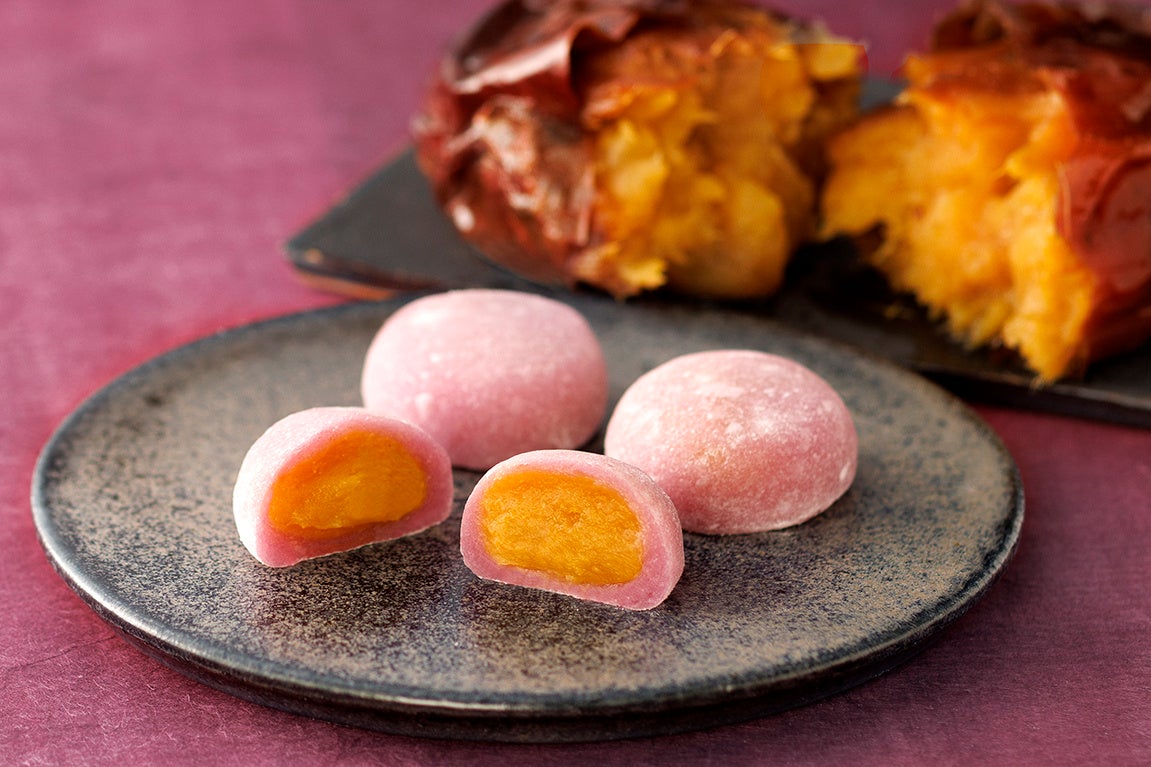 種子島産安納芋を焼き上げ、練乳・卵黄・バターとともにスイートポテト風に仕立てたこっくりとした餡を甘さ控えめなアヤムラサキを練りこんだ柔らかなお餅に包み込みました。秋を感じさせるさつま芋を味わい深く仕上げた季節限定の逸品です。