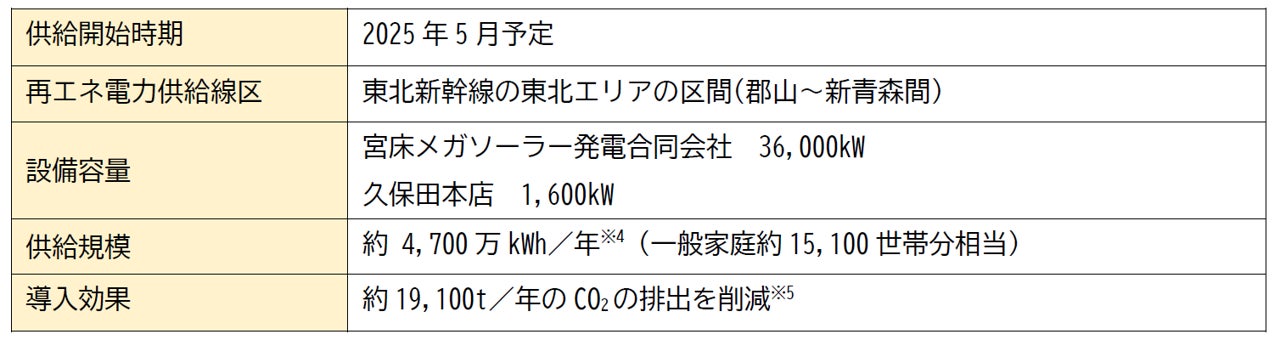 ※4 東北新幹線(郡山~新青森間)の運行に必要な電力のうち約9%が再エネ電力となる。