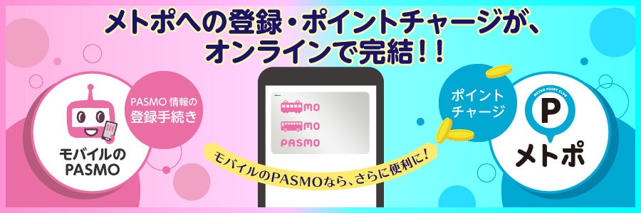 モバイルのPASMOなら、メトポへの登録・ポイントチャージがオンラインで完結します! 詳細