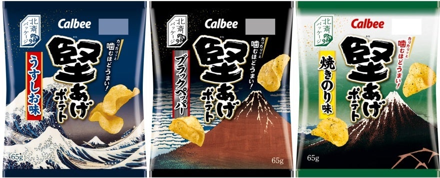 カルビーとすみだ北斎美術館は、2020年7月に葛飾北斎(以下、北斎)生誕260年を記念して「すみだ北斎美術館監修ポテトチップス」を期間限定発売しました。続く2021年5月には、すみだ北斎美術館が所蔵する北斎を中心とした約1800点の作品の中から、「日本には堅あげポテトがある。」という和の世界観を大切にするコンセプトや各商品の色味などとマッチした3点を厳選。「堅あげポテト」の定番3品をすみだ北斎美術館監修デザインに切り替えて発売しました。その際、お客様から多くの反響をいただいた上、堅あげポテトファンへのアンケート※1で、“一番好きな限定パッケージ”に選ばれたため、今年もコラボレーションする運びとなりました。