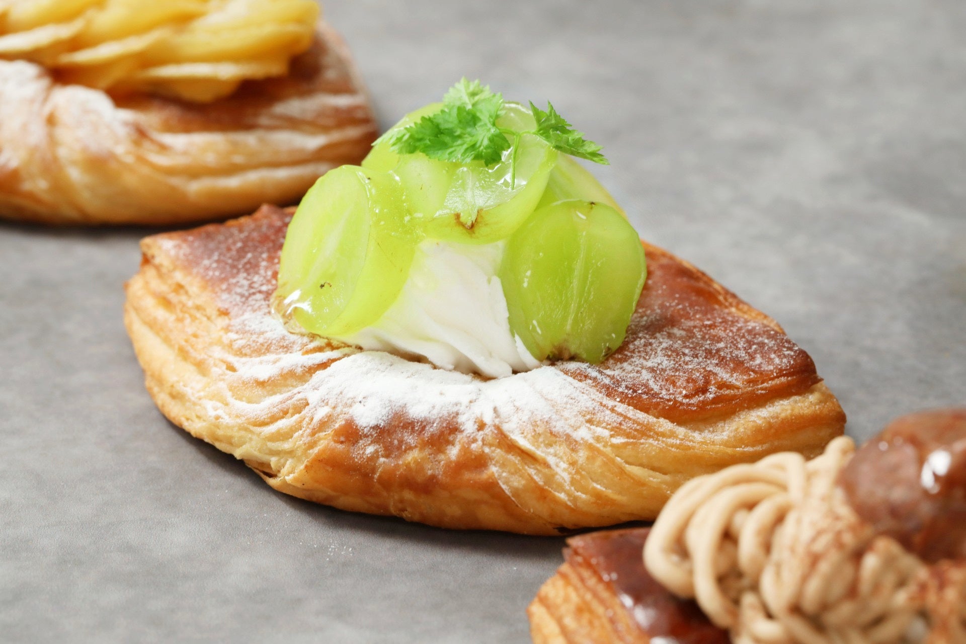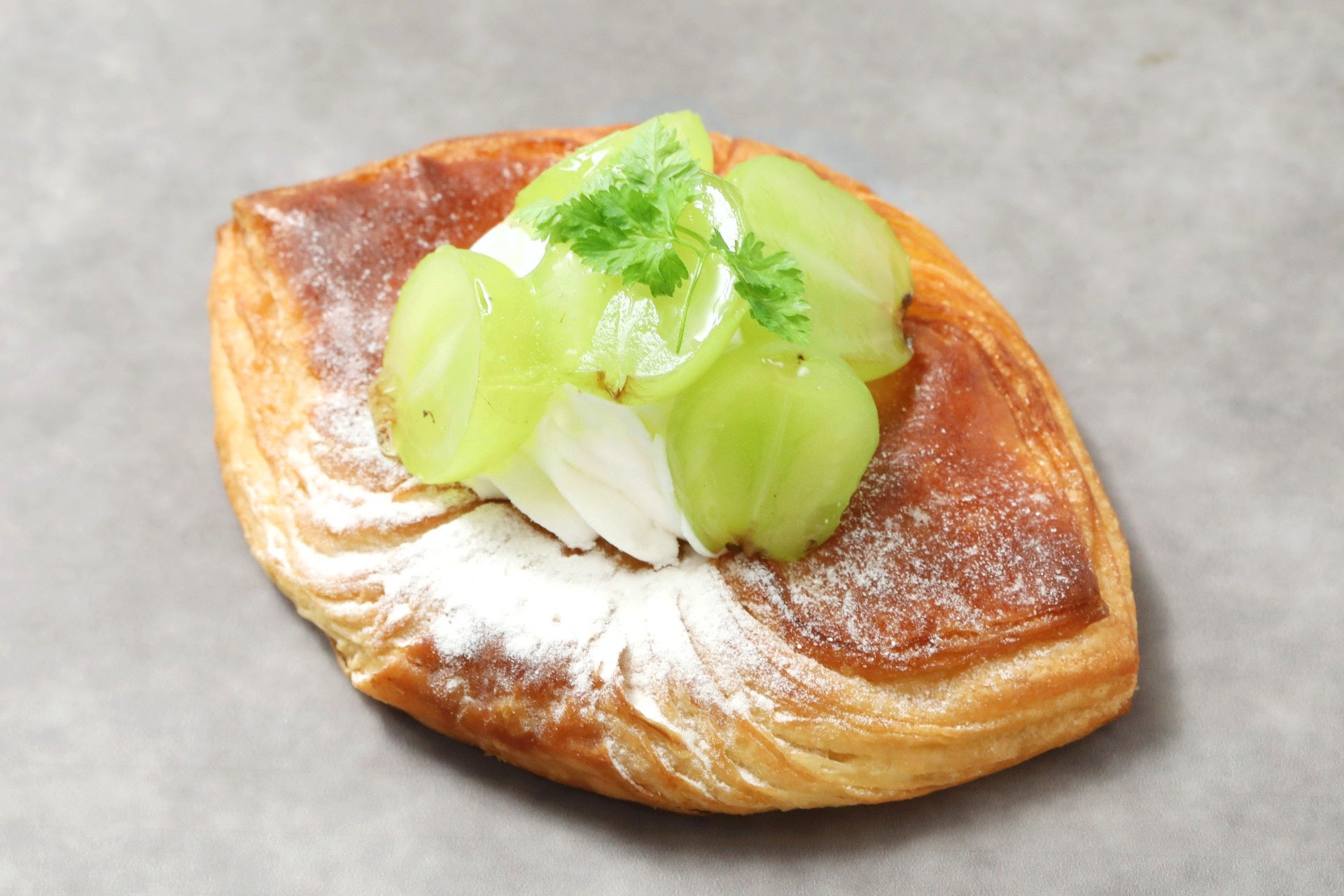こだわり:シャインマスカットがキラキラと輝く秋のデニッシュ。発酵バター香るサクッと食感のデニ