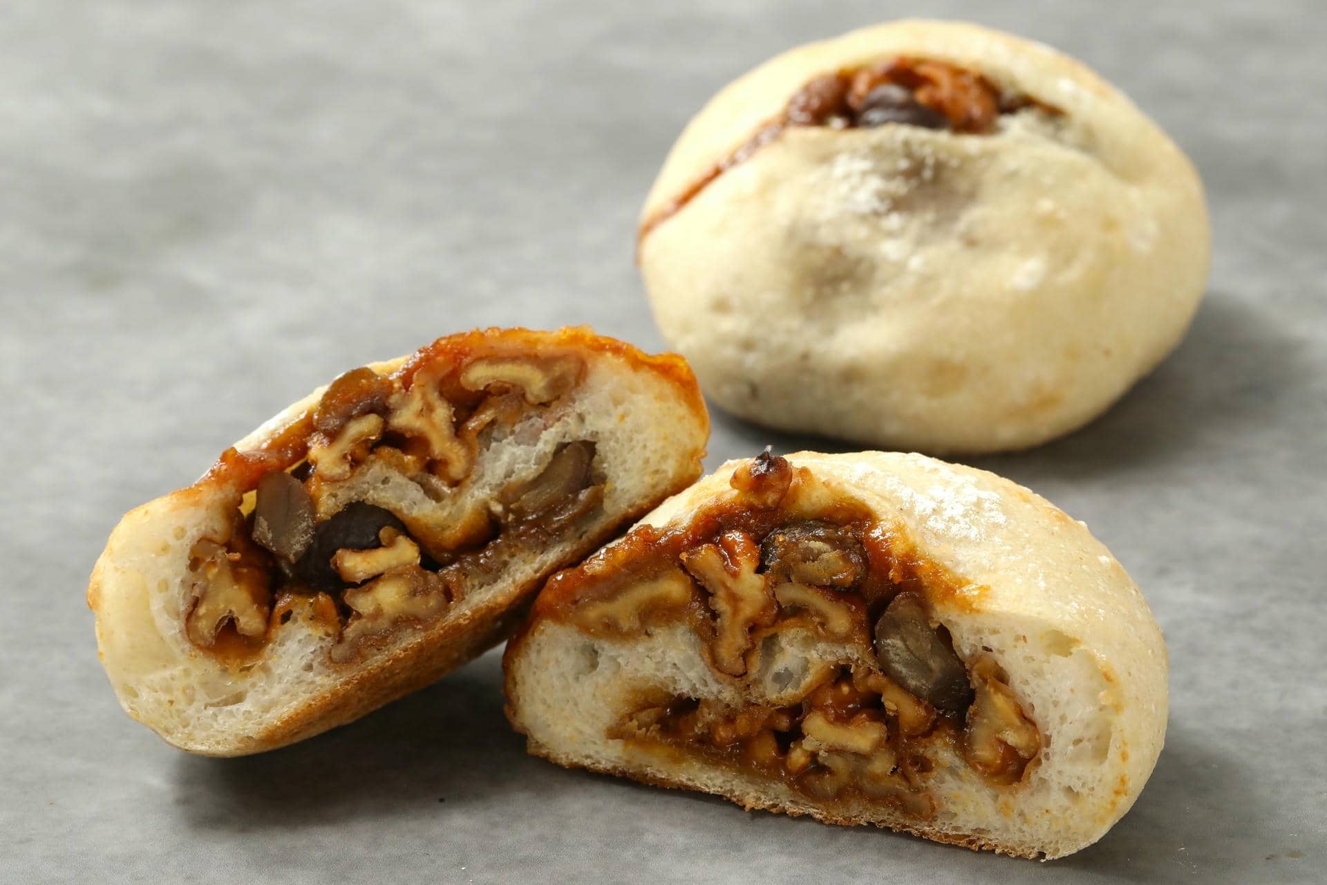 栗とクルミ、キャラメルを包んで焼き上げました。もっ