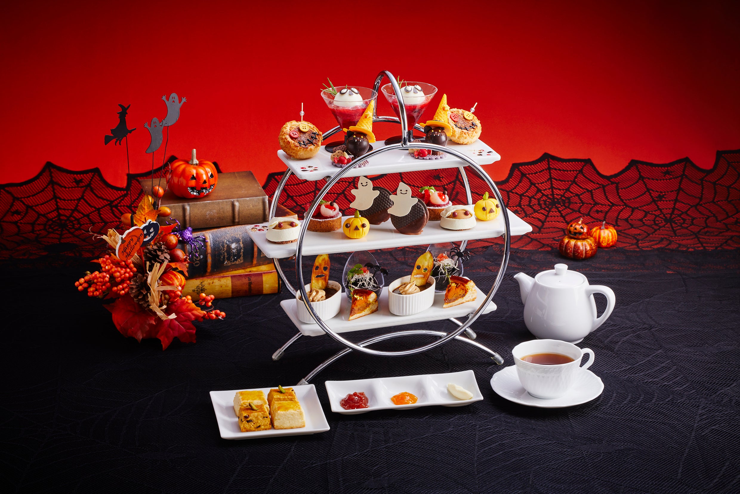 「ロイヤルスコッツ」では、“コワ・かわいい”をテーマにしたお料理が並ぶスタンドをはじめ、豪華なメイン、ハロウィンの雰囲気あふれるデザートプレート、フリーフローがセットになった「ハロウィントワイライトアフタヌーンティー」が登場。