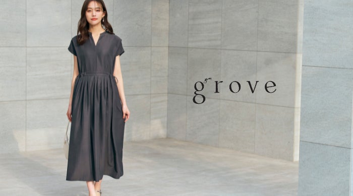 全国のショッピングセンターを中心に、オフィスシーンからデイリーまで活躍するフェミニンカジュアルを展開するブランド「grove(グローブ)」は、幅広い女性に支持される着回し力の高いトレンドアイテムを多数ご提案しております。
